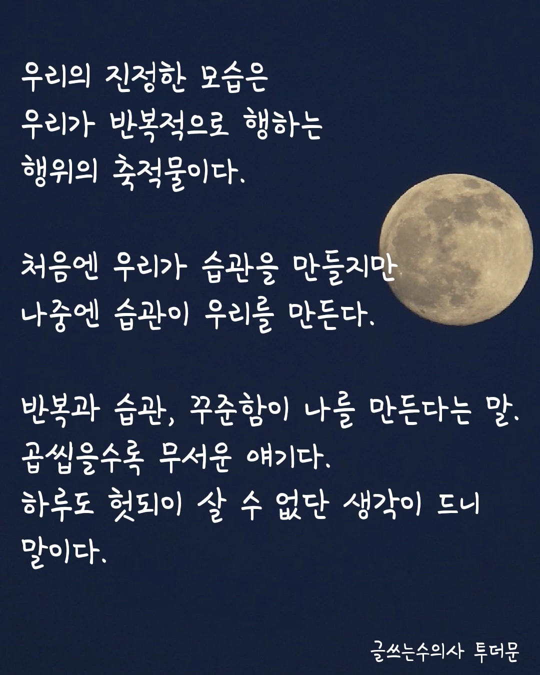 반복과 습관, 꾸준함이 나를 만든다는 말.