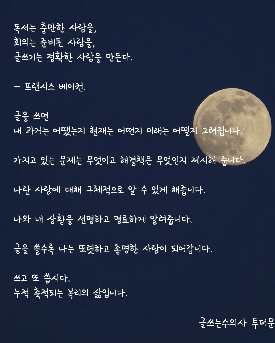 글을 쓸수록 나는 또렷하고 총명한 사람이 되어갑니다.