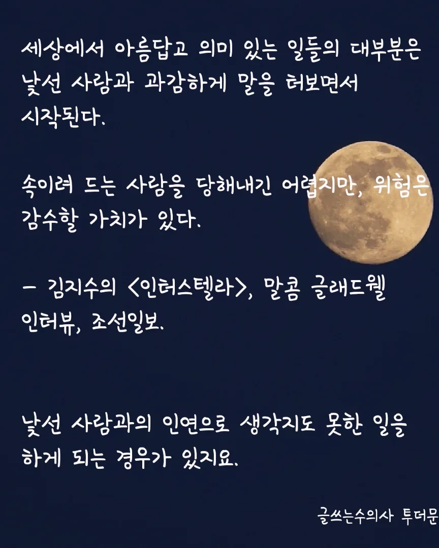 낯선 사람과 과감하게 말을 터보면서 시작된다.
