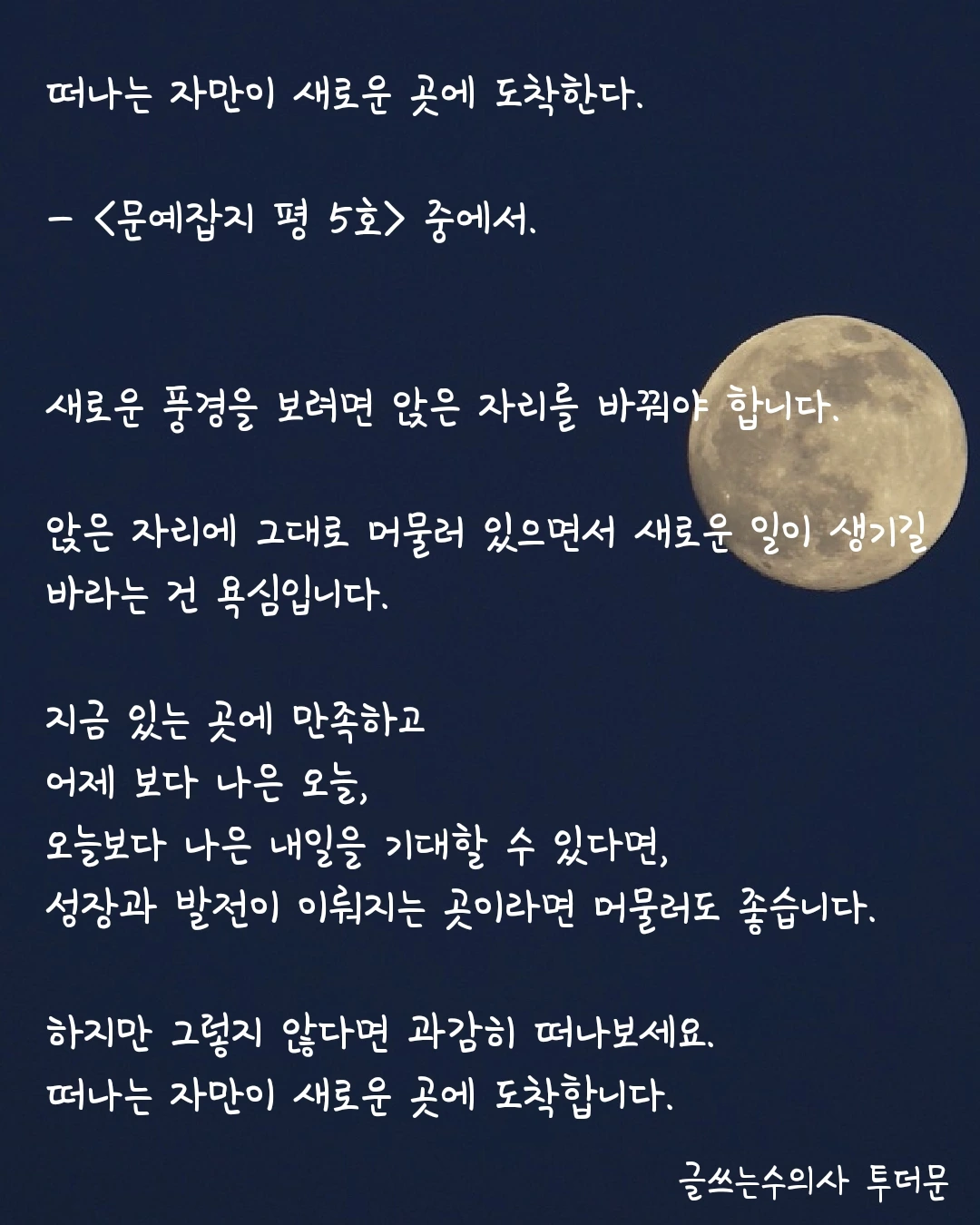 떠나는 자만이 새로운 곳에 도착합니다.
