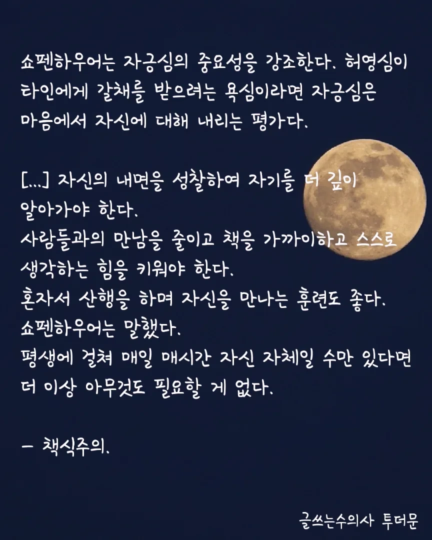 쇼펜하우어는 자긍심의 중요성을 강조한다.