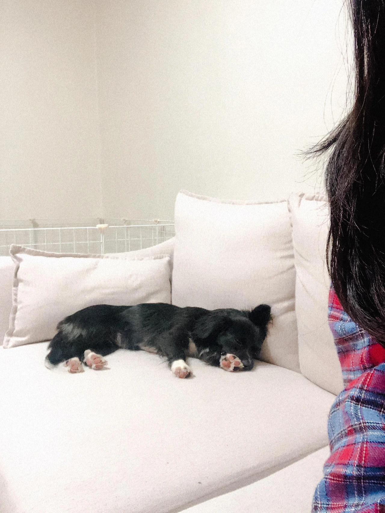 목욕을 다녀와서 며칠은 너를 절대 만지지 않았어. 사실 만질 수 없는 게 맞았지만. 목욕에 다녀와서도 너는 괜찮은 것 같았어. 켄넬과 울타리를 치우고 놔준 방석에서 편하게 잠을 잤어. 난 그 모습을 보기만 해도 너무 행복했어. 그리고 좋아지고 있다고 계속 생각했어.