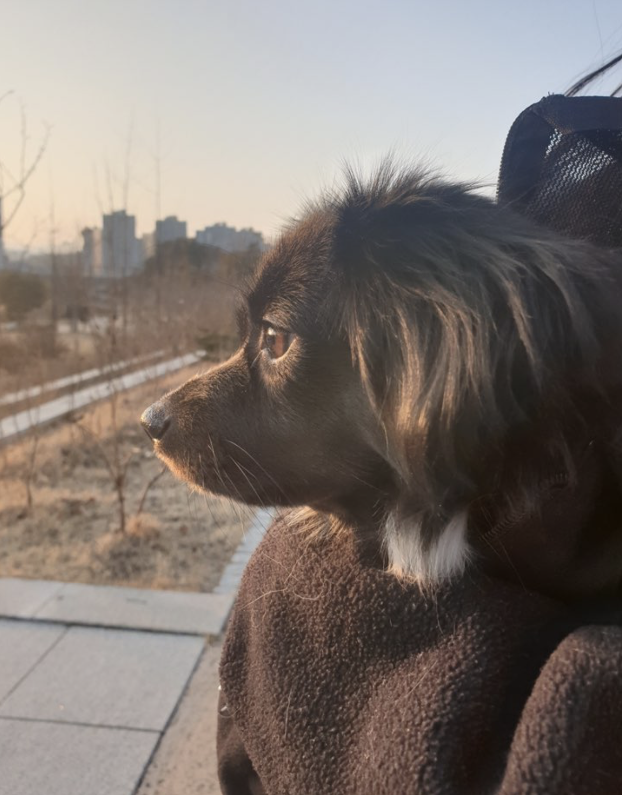 산책을 시작했다. 집에서 산책 연습을 하다 목줄을 풀고 도망간 적도 있고 목줄을 이로 잘근잘근 씹어 끊을 번한 적도 있다. 그래서 우선은 집에서 목줄을 하고 시월이와 이방 저 방을 걸어 다닌다. 어느 정도 잘 따라오기 시작해서 이제는 시월이를 안아서 밖으로 산책을 나간다.