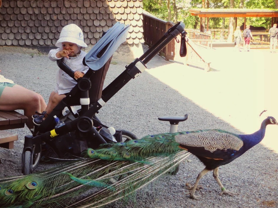 그간 보았던 많은 블로그에서도, 그리고 여행책자에서도 『스칸센(Skansen)』 은 스웨덴의 민속촌이라고 하지 않았던가? 비록 우리가(오늘은 동행이 있다) 정문이 아닌 옆문으로 들어오긴 했지만, 어느새 주변은 오래된 건물들보다 하나둘씩 보이는 동물들이 더 많아지기 시작했다. 심지어 너무나 아무렇지 않은 듯 공작새 두어 마리가 휴식 중인 사람들 사이를 오가고 있다. 꽁지의 깃털이 손에 닿을 듯 스쳐가자 급기야 아저씨 둘은 흥분하기 시작했다. 우와~ 여기 뭐지!! 대박인데!!