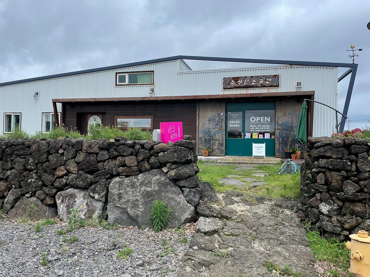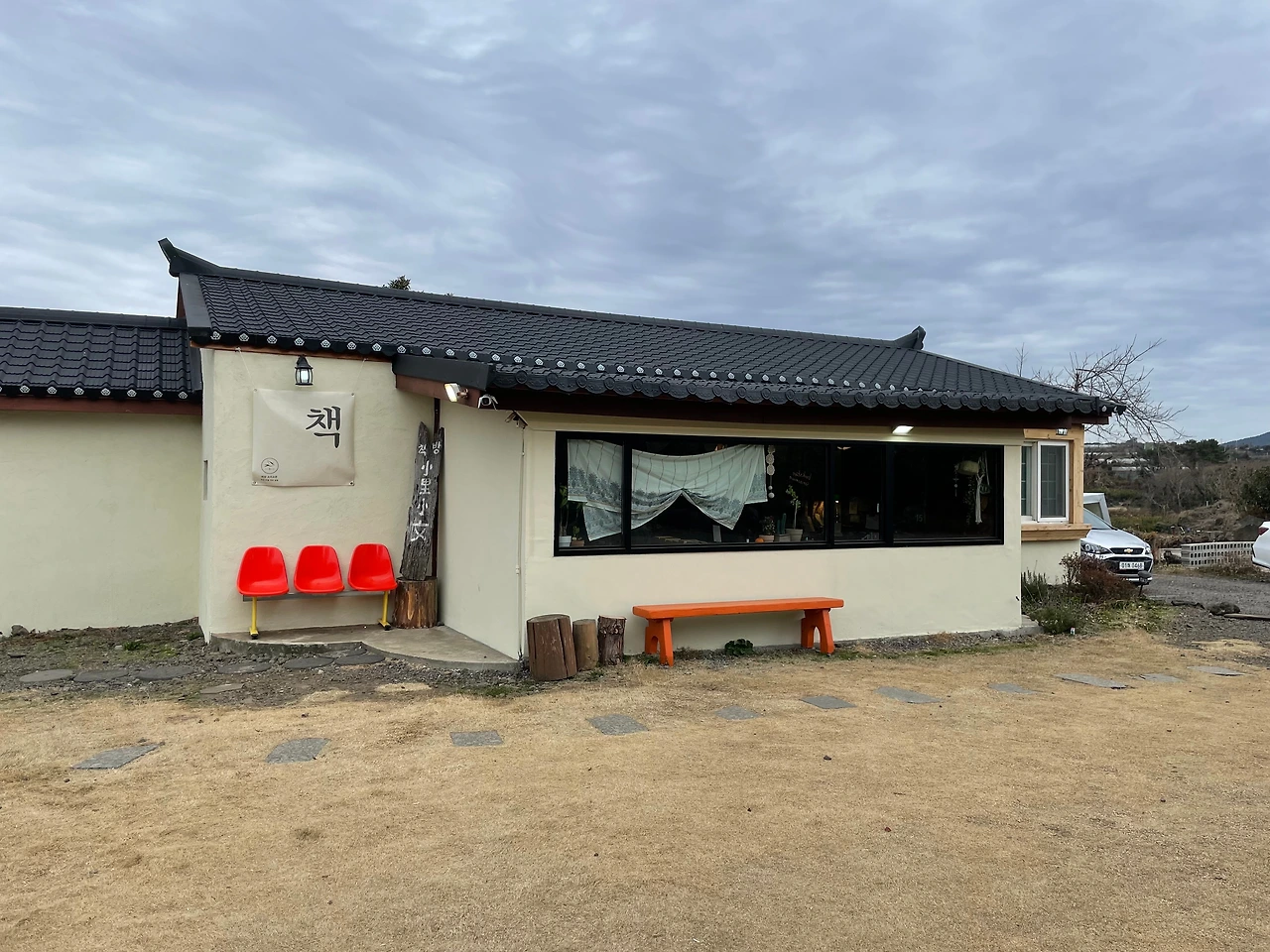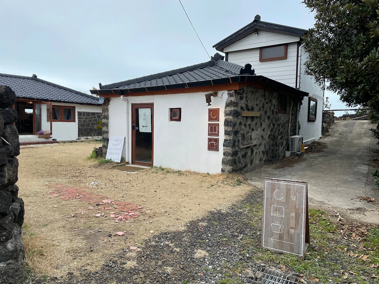 * 한 줄 특징 : 돌담길을 따라 마을 한가운데로 들어가면 비교적 넓은 주차장과 긴 창을 가진 단층 건물이 나온다.