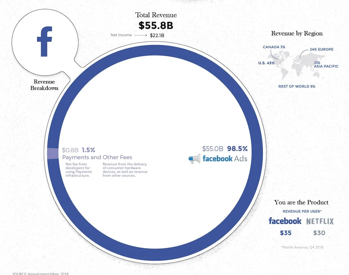 Facebook generates almost all revenue (98.5%) from ads