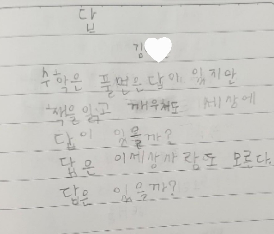 자습 시간에 그저 생각나는 대로 끄적였다는 아들 녀석의 시.