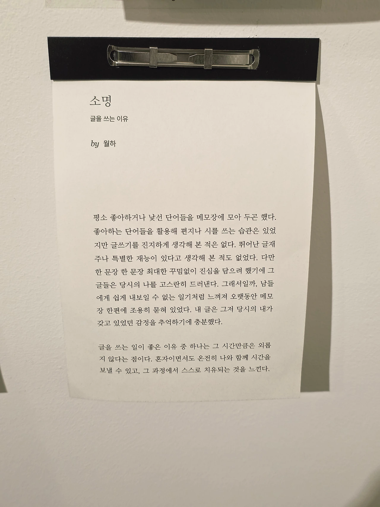벽면에 실린 글들에서 많은 공감과 위로를 느꼈고
