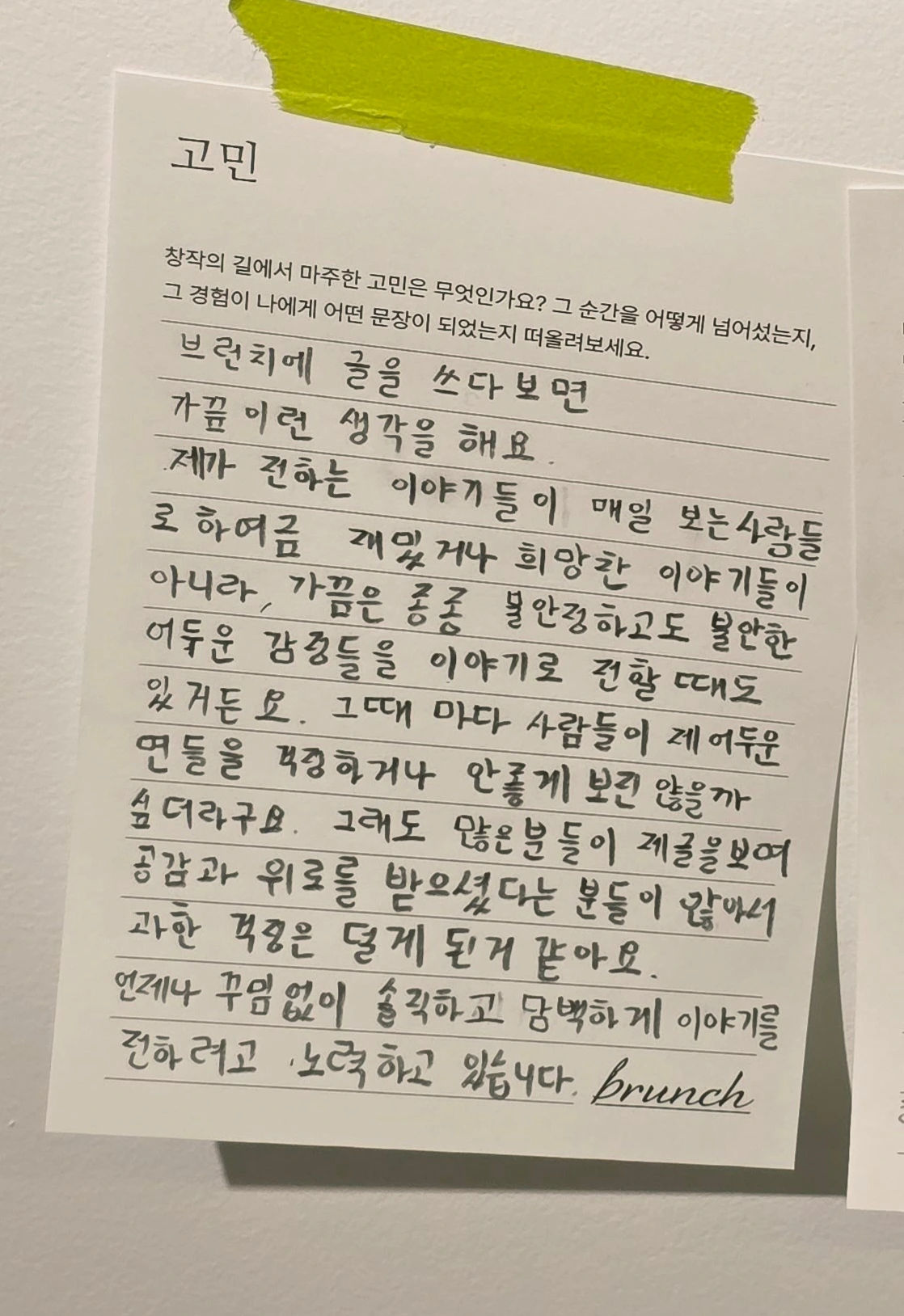 지금껏 억눌려왔던 걱정과 고민을 많은 작가님들과 나눌 수 있어서