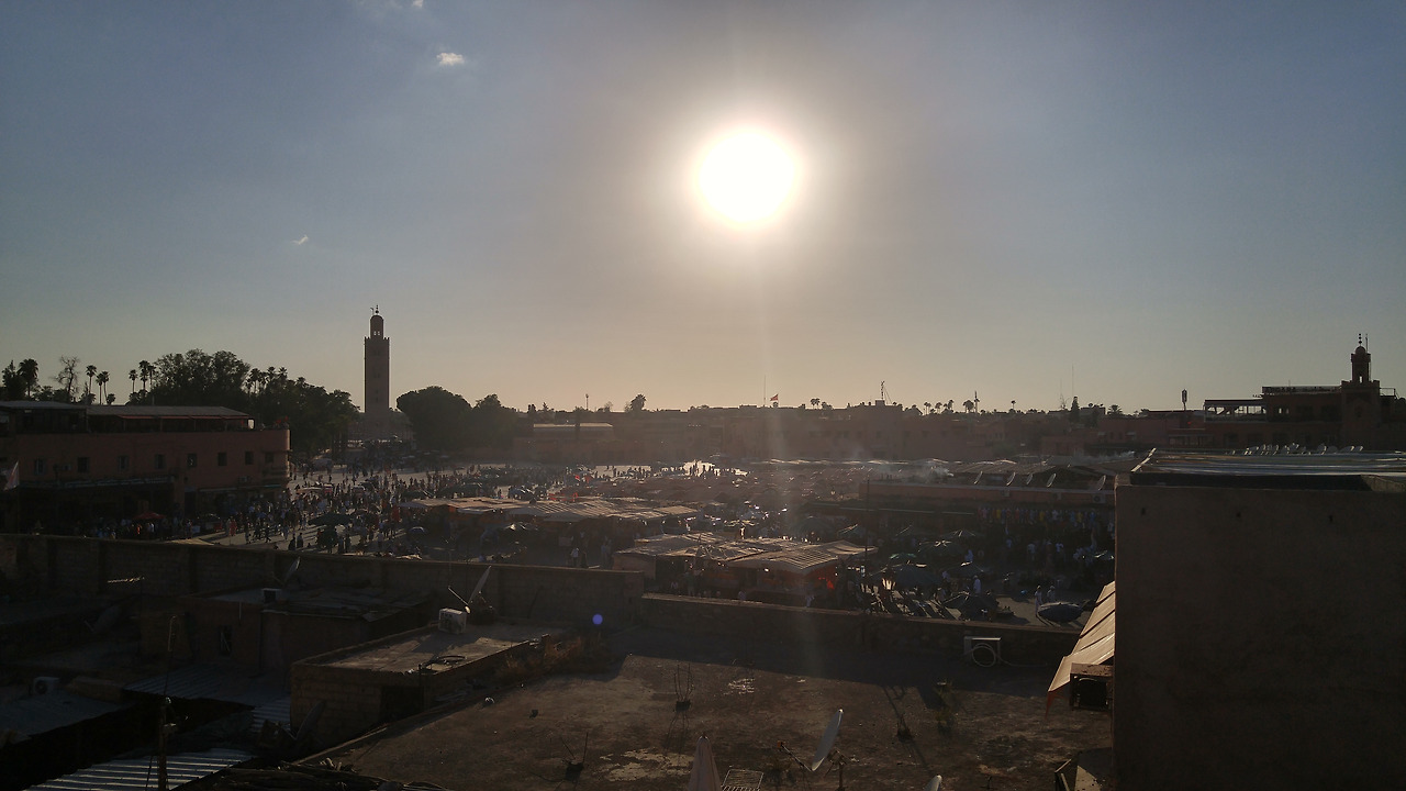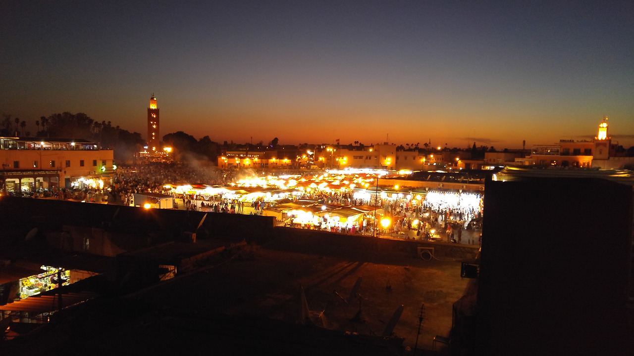 정열의 도시, 마라케시는 전체적인 도시가 흙갈색의 느낌이다. 제마 엘프나 광장의 뜨거운 태양과 어울리는 이 흙갈색은 모든 건물의 색깔이 비슷해보인다. 흙갈색의 제마 엘프나는 밤이 되면 노란 불빛으로 물들어 더욱 더 색감이 깊어진다.