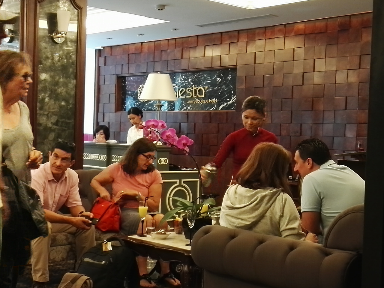 라 시에스타에 도착하면, 우선 웰컴 주스부터 제공한다. 많은 동남아시아 호텔들이 제공하는 서비스이지만, 이 곳의 웰컴 주스는 보다 특별해 보인다. 칵테일 쉐이커에서부터 가져와서 바로 그 자리에서 따라주는 주스는 더욱 신선하게 느껴지고 독특했다. 그렇게 웰컴 주스를 마시면서 굳이 리셉션에 가지 않아도 직원들이 체크인을 도와주었다. 체크인 후에는 하노이 지도를 보여주면서 어떻게 이동할 수 있고, 어디를 가면 좋을지에 대해 상세히 설명해준다.