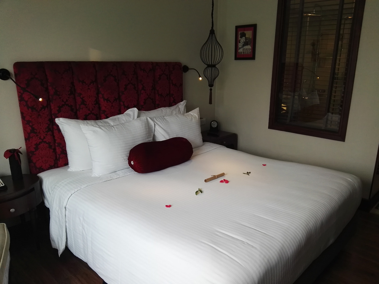 그렇게 모든 소개와 정보를 제공한 뒤, 객실로 안내해준다. 객실에 들어가는 순간 역시 객실은 참 정갈하다는 느낌을 주었다. 침대와 욕실 등 곳곳에는 생화가 뿌려져 있다. 생화는 물론, 인테리어의 소품이지만 침대 시트를 갈아달라는 표시 역시 생화를 침대 시트 위에 올려놓으면 된다.