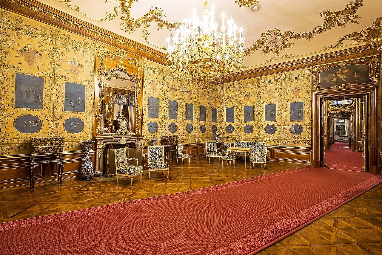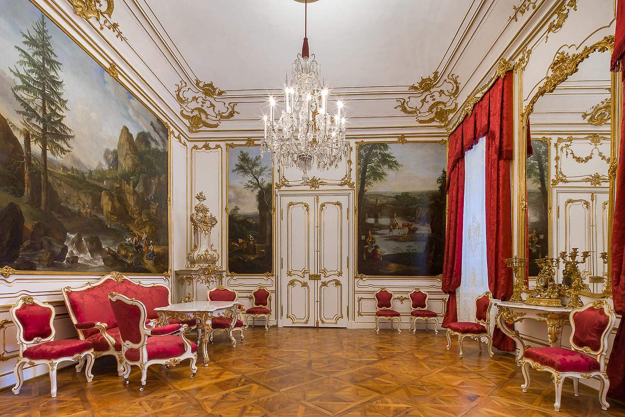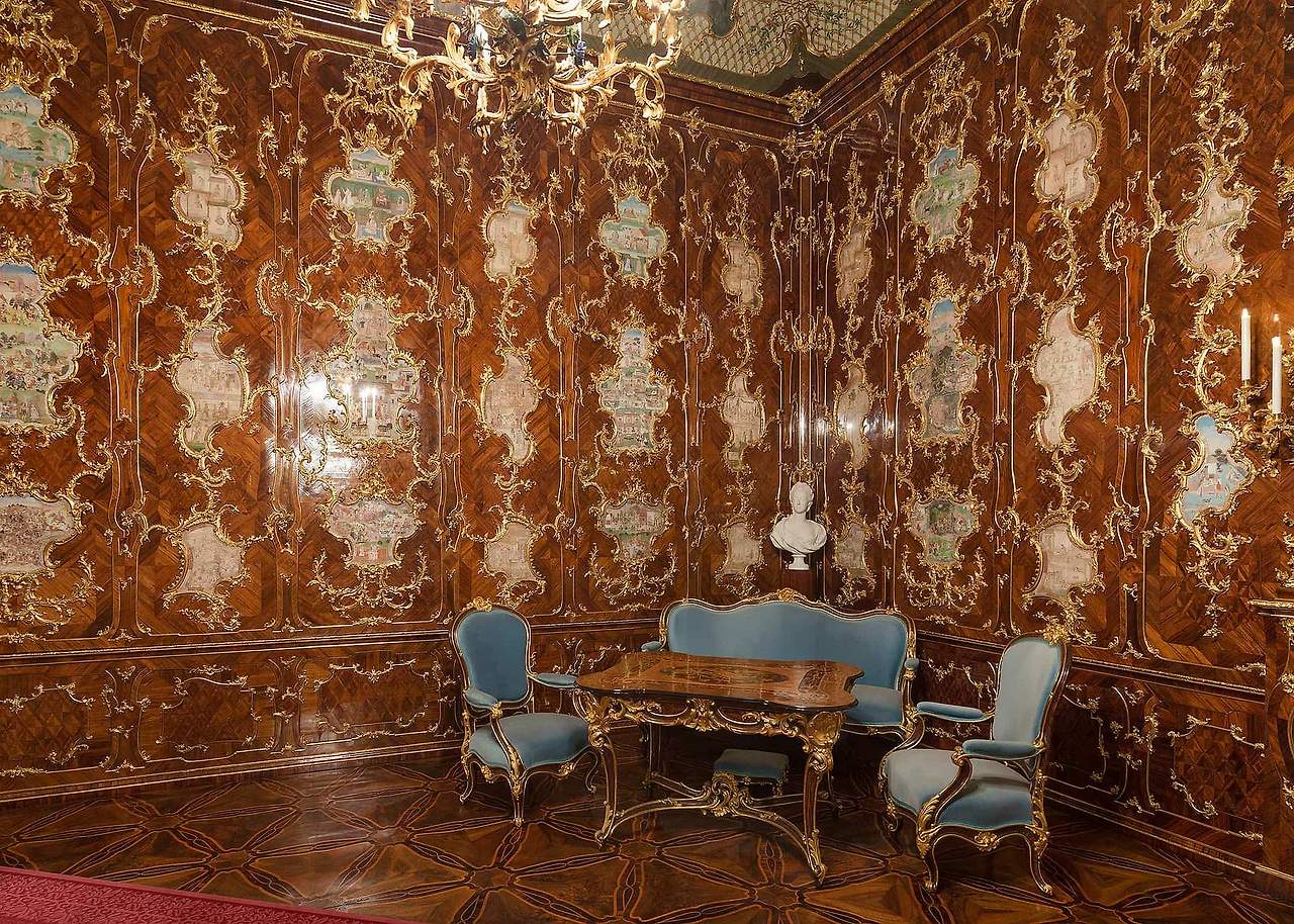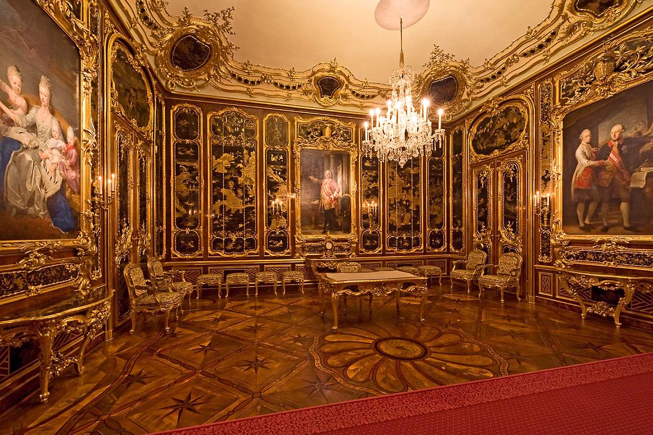 마리아 테레지아는 당시 대유행이었던 중국과 일본 예술을 매우 좋아했다. 그래서 두 별실 안에는 값비싼 중국산 무늬판들과 황금 테두리들이 화려하게 자리 잡고 있다.