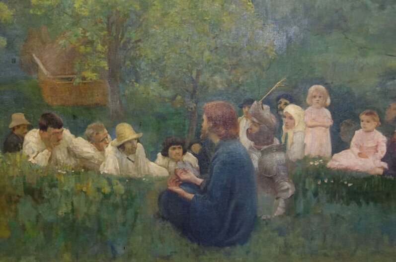 예수님의 산상설교를 보여주는 작품 중에 가장 아름다운 이 작품은 성경 속 시대가 아니라 헝가리의 자연을 배경으로 헝가리의 전통 복장을 한 사람들에게 예수님이 설교를 하고 있다.