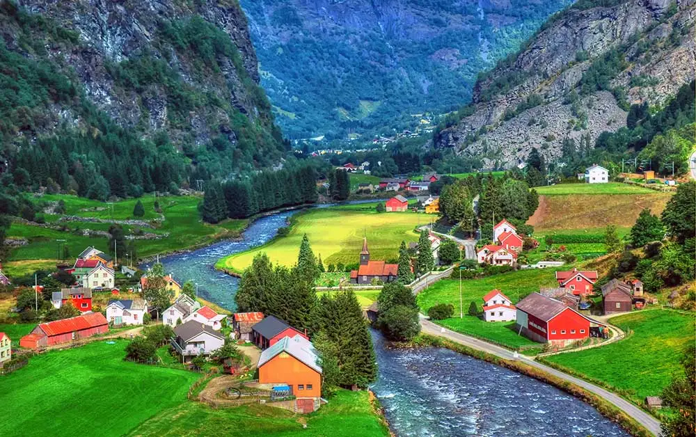 고요와 평화로움을 맛보는 2시간 동안의 피오르드 여행을 끝내고 나면 유람선은 구드방겐에 도착한다. 협곡에 자리 잡은 구드방겐은 호수와 숲이 하나로 된 수정같이 아름다운 마을이다. 예부터 피오르드 주위는 자연조건이 험하지만 농사를 짓거나 목축 또는 어업을 할 수 있는 작고 아름다운 마을이 많이 생겨 지금까지 내려온다. 이 곳에 이르면 여기서 여행을 끝내고 그냥 푹 쉬고 싶다는 생각이 절로 든다.