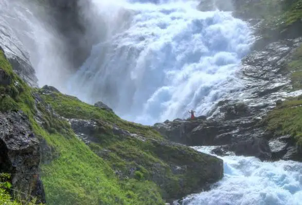 여름이지만 뮈르달 역이 있는 산 정상은 불어오는 바람으로 제법 쌀쌀하다. 뮈르달을 출발한 기차는 얼마 후 93미터 높이의 키요스 폭포가 나타나면 잠시 정차한다. 웅장한 폭포를 감상하기 위해서이다.