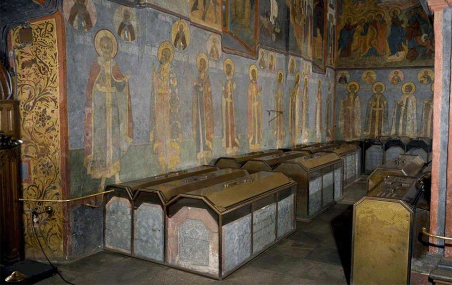 오랜 세월 동안 러시아의 수호천사였던 미카엘 대천사를 모시던 대천사 성당에는 이반 4세를 비롯하여 황제들과 그의 가족들의 무덤이 있다. 표토르 1세가 수도를 옮기자 그를 비롯한 그의 후손들은 새 수도인 상트페테르부르크에 있는 성당에 안치되었다.
