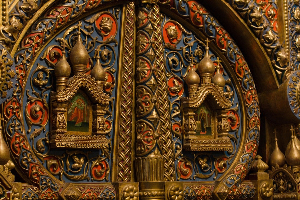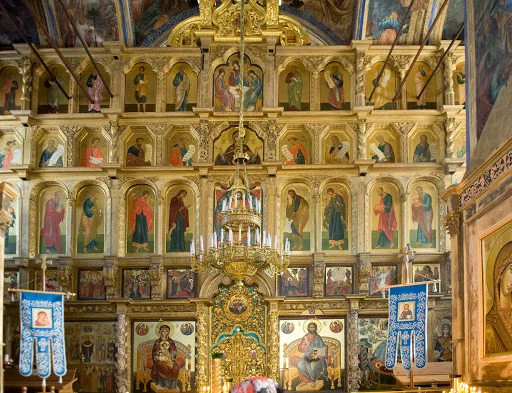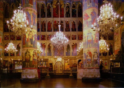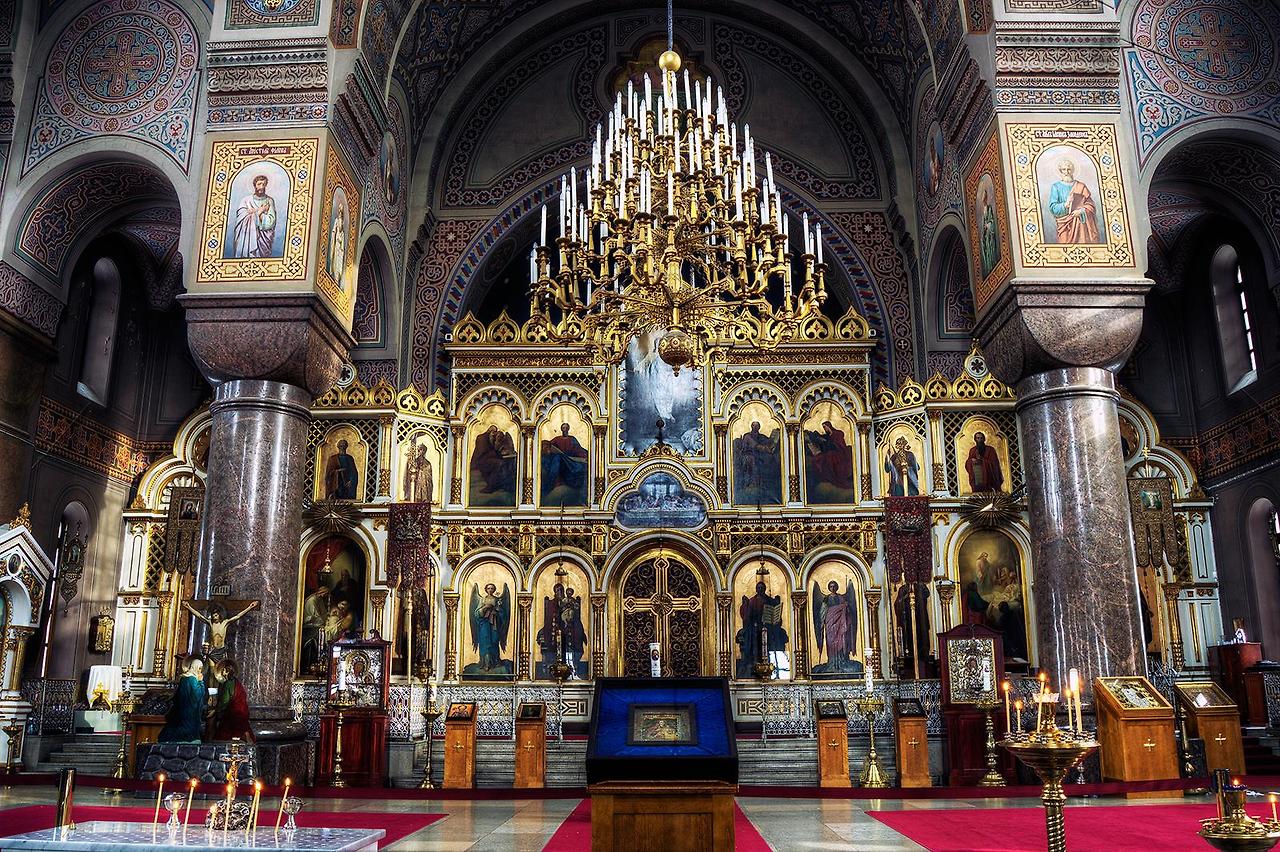 러시아 정교회 성당은 다른 가톨릭 성당과는 달리 성화로 만들어진 <이콘>으로 성당을 장식한다. 보통 정교회 성당은 4단의 이콘으로 장식하는데 이 곳은 총 주교 성당이라 5단의 이콘이 있다.