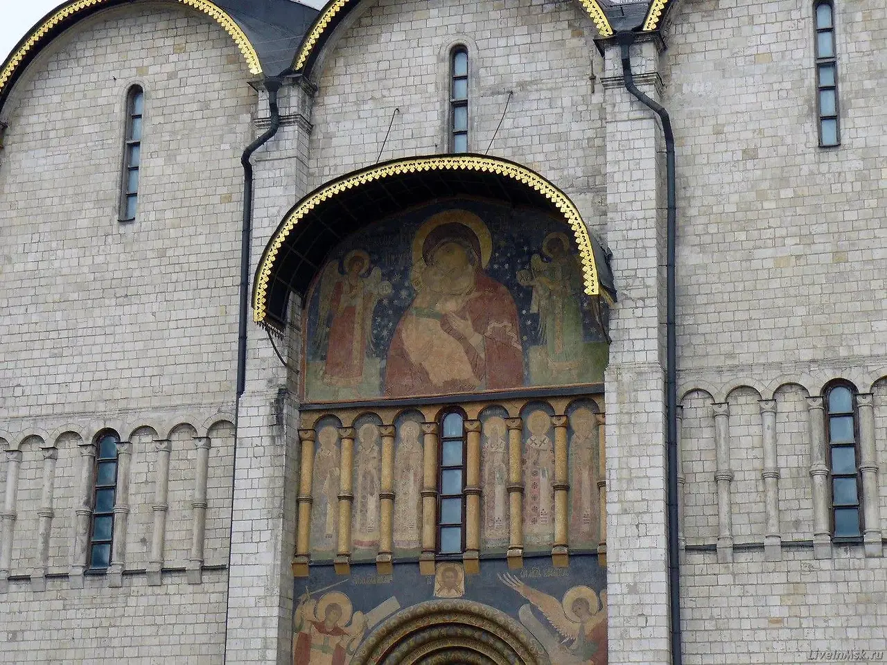 내부에는 유명한 이콘화가였던 안드레이 루블료프와 페오판그레크가 참여한 것으로 추정되는 성화들과 수태고지와 예수의 탄생 등의 이콘화가 화려하게 장식되어 있다.