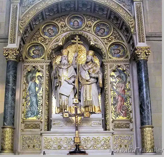 중앙제단 근처에서 보이는 무덤의 주인공은 스테파나츠이다 . 그는 2차 세계대전 당시 자그레브의 대주교로써 유고 슬라비아 연방으로부터 독립하려는 크로아티아 중심의 파시스트 세력인 우스타세 정권을 암묵적으로 지지하였다.