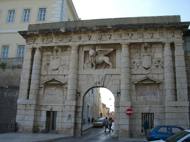 1543년에 건축된 육지의 문은 자다르에서 가장 아름다운 르네상스 시대의 건축물로 베네치아 공화국을 상징하는 날개 달린 사자상과 베네치아 문장이 새겨져 있다.