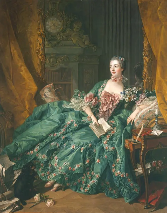 권력을 과시할 목적으로 평소 우아한 모습의 초상화를 많이 남긴 퐁파두르 후작부인은 1745년 24세의 나이로 루이 15세의 공식정부가 되었으며 이후 43세의 나이로 사망할 때까지 약 20여년 동안 베르사유 궁정의 실세로 당대 최고의 스타일리스트를 자처하며 화려하고 섬세한 로코코 문화를 주도하였다.