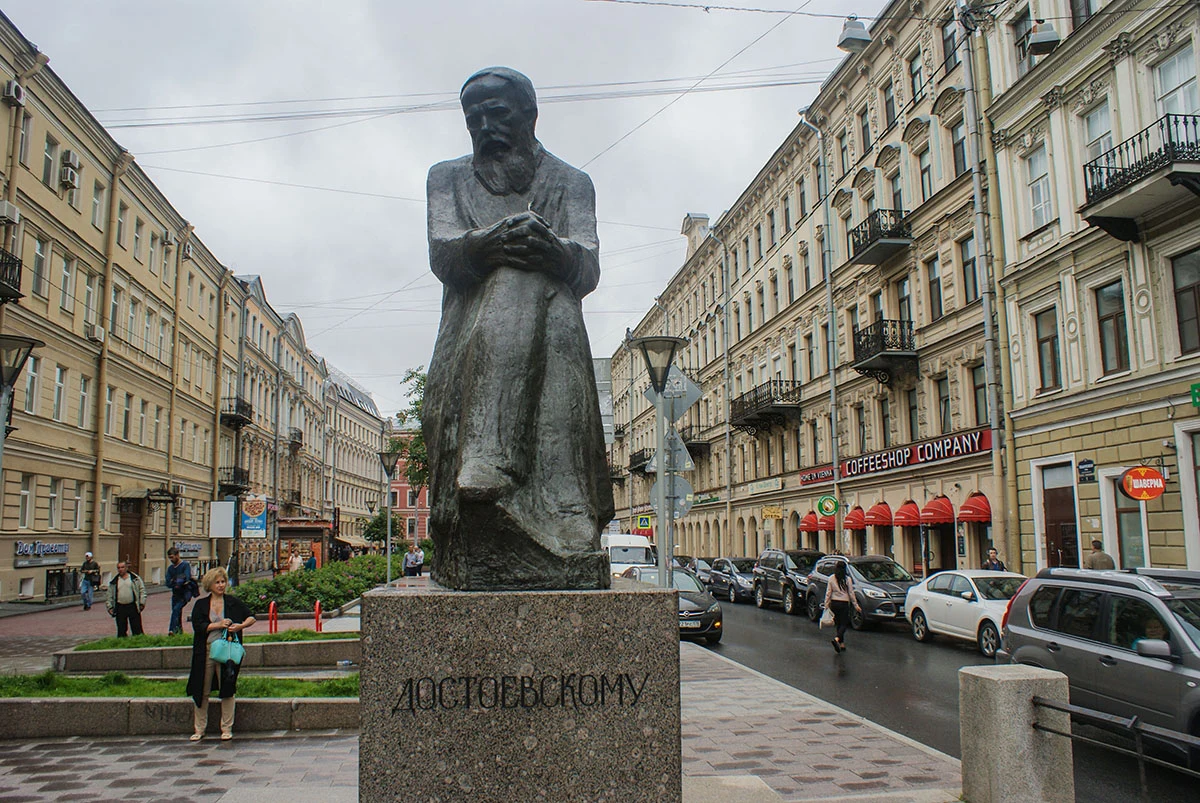 아파트 박물관으로 가는 길 입구에는 금빛 돔을 가진 블라디미르 성당이 있다. 도스토예프스키의 가족이 다니던 성당이다. 도스토예프스키가 숨을 거두기 전에 받은 종부 성사도 이 성당의 사제가 와서 했다. 성당 가까운 곳에는 그의 동상이 있다.