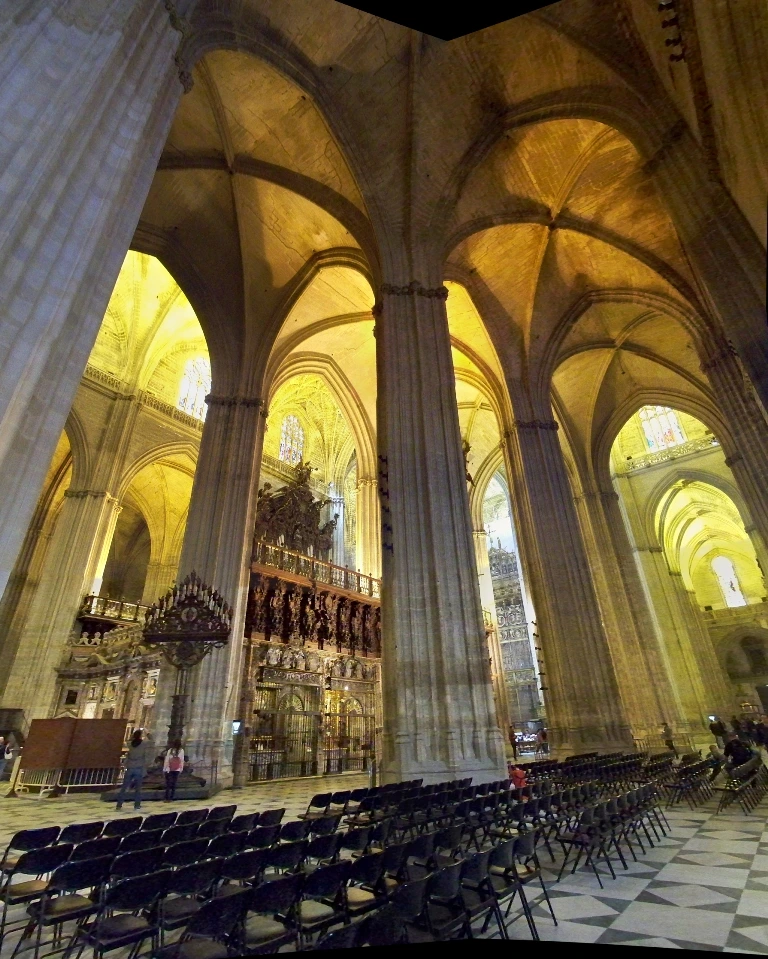 중앙 제단으로 나아가면 갈수록 깊고 울림이 큰 오르간 소리와 함께 천상의 빛이 쏟아진다. 성경 속 인물들로 가득 찬 스테인드글라스가 성당 안을 다양한 빛으로 채운다. 성당 안의 다채로운 빛은 깊고 높은 천장으로 뻗어간다. 휘어있지만 십자가 모양한 천장의 뼈대들이 빛을 받아 반짝거리고 있다.