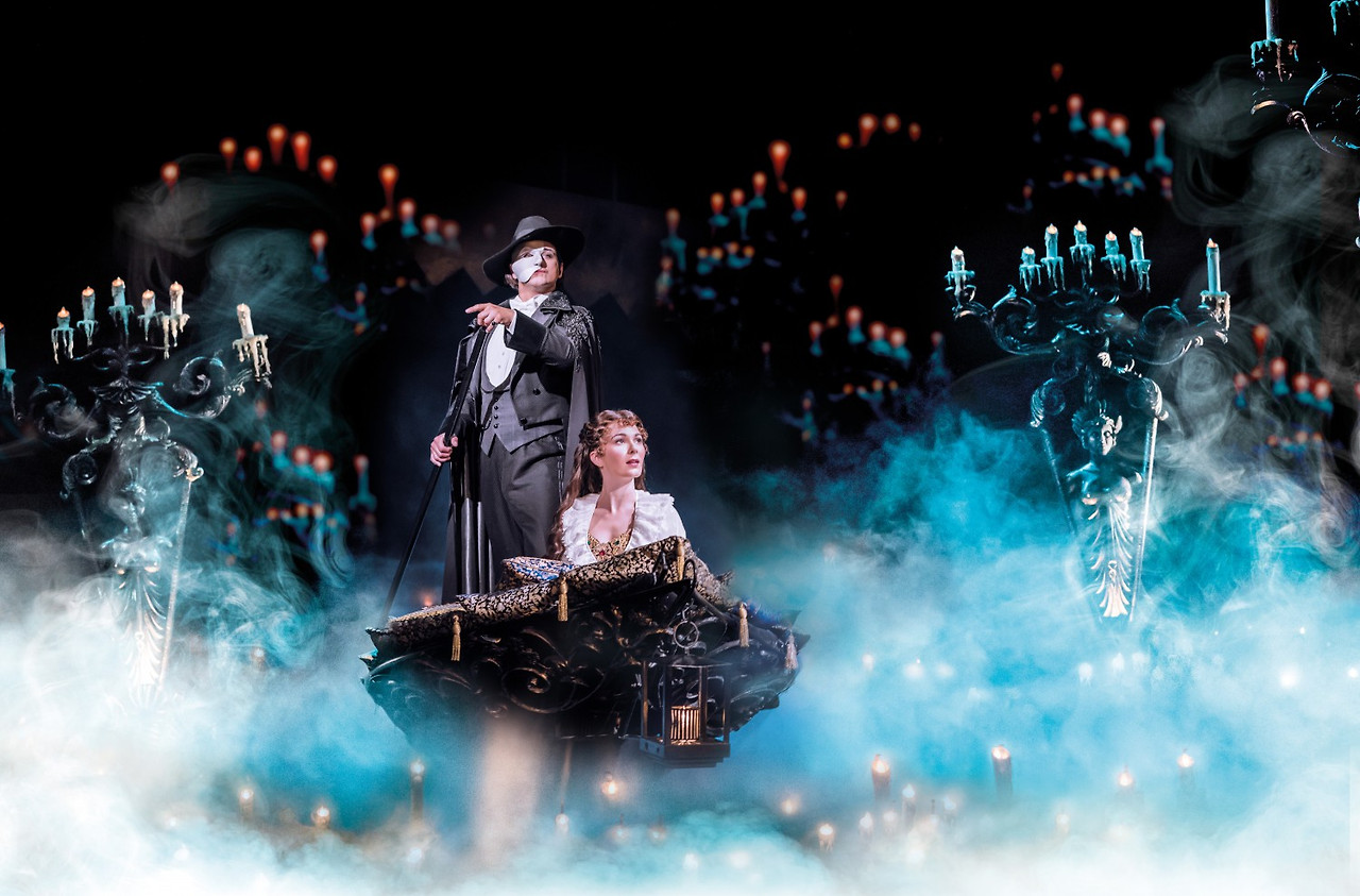 분명 마루판이었던 무대가 완벽하게 호수로 바뀌고 배가 빙판 위를 미끄러지듯 우아하게 지나가자 관객들은 황홀함에 넋을 잃는다. 이 호수를 연출하려고 드라이아이스 250킬로그램과 연기 머신 10대를 동원한다고 한다. 관객을 사로잡는 <오페라 유령>의 또 다른 장면은 1막 끝부분에서 샹들리에가 떨어지는 장면이다.
