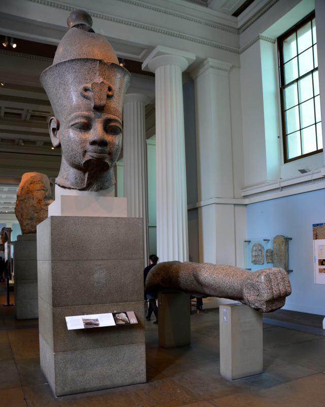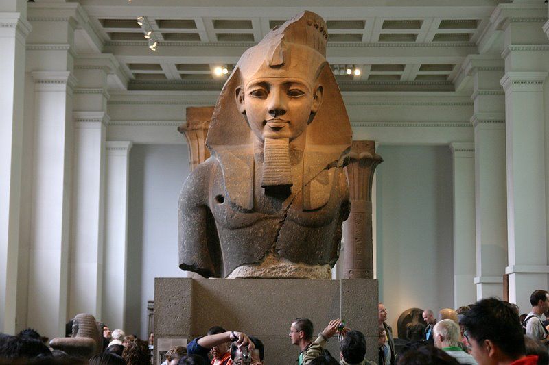 기원전 1279년부터 67년간 이집트를 지배한 람세스 2세 조각상은 무게만 7.5톤에 달한다. 조각상이 너무 무거워 머리 부분과 몸 부분을 따로 나누어 가져왔다고 한다. 람세스 조각상의 아래 부분은 아직 테배 신전에 남아 있으며 지금 조각상의 아래 부분은 다른 조각상의 몸통이다. 몸통 중앙에 구멍이 난 이유는 이집트에서 영국으로 옮겨오기 위해 쇠막대기를 끼워 운반했기 때문이라고 한다.