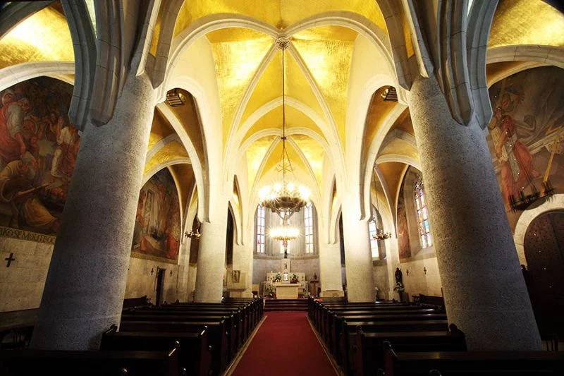 성당인으로 들어가면 고딕 양식의 벽과 기둥 그리고 천장이 보이며 또한 크로아티아 국민 조각가인 이반 메슈트로비치가 조각한 피에타 조각상을 감상할 수 있다.