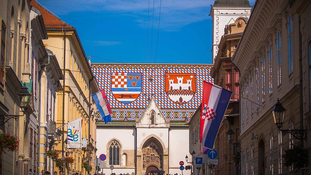 지붕 타일의 오른쪽 자그레브의 문장을 살펴보면 위쪽에 자그레브 성이 보이며 성 위로 희망을 상징하는 별과 초승달이 보인다. 그리고 아래로 자그레브의 강을 상징하는 문양과 그 아래 산을 상징하는 문양이 있다.