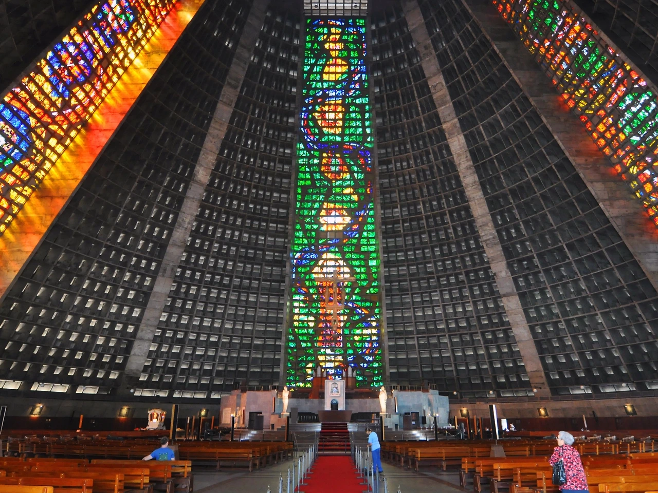 1964년에 건립하여 1967년에 문을 연 대성당은 원뿔형의 매우 독특한 외관을 가지고 있다. 지름 104m와 높이 68m인 대성당은 2만 5천 명을 수용할 수 있다. 성당 앞에는 브라질 성인인 성 세바스티안의 동상이 있다. 엄숙하면서 현대적인 장식을 한 성당으로 들어가면 천장부터 바닥까지 4면을 채운 스테인 그라스가 여행자를 압도한다.