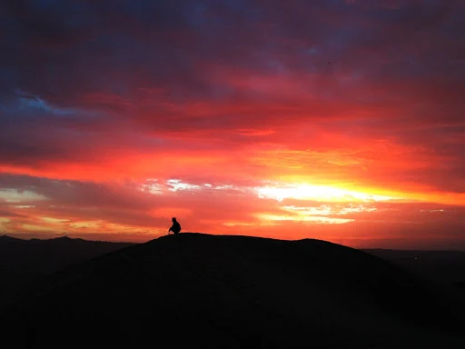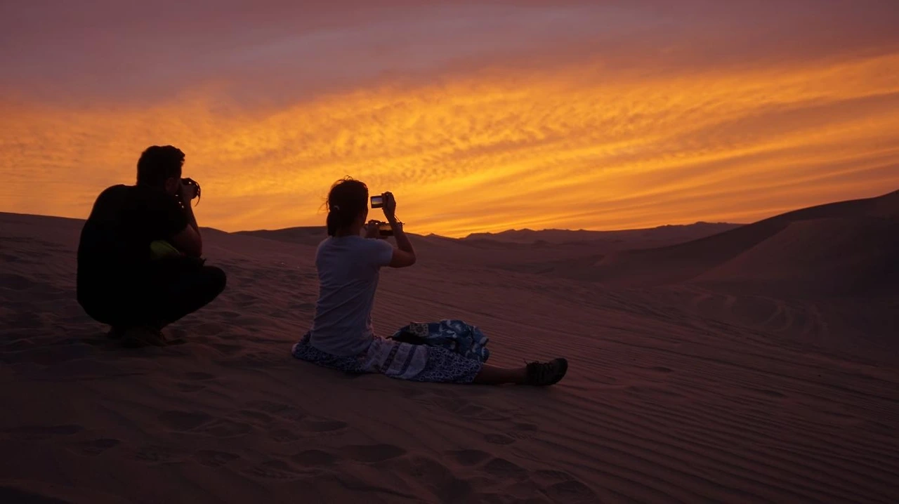 사막 한가운데 있는 모래언덕에서 바라보는 일몰의 광경은 한 폭의 예술작품처럼 경이롭다. 고운 모래로 이루어진 아름다운 곡선의 모래 능선 아래로 해가 차츰 내려앉으면 사람들은 아무 말 없이 자신의 시간으로 돌아간다.