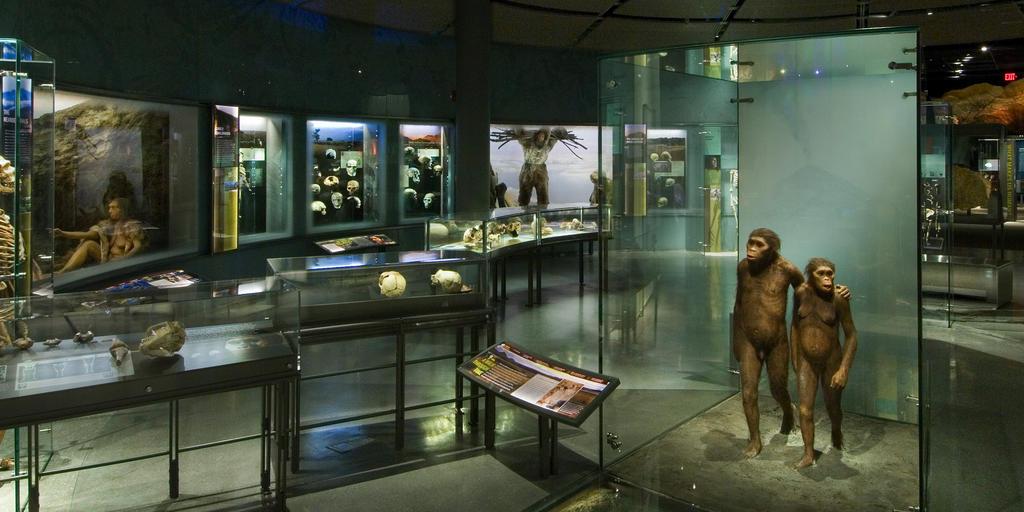 남녀 침팬지가 즐거운 모습으로 데이트하는 장면을 조각한 전시물이 있는 인간 생물관 전시실은 인류의 진화과정을 시대별로 재미있게 전시해 놓았다. 인류 진화의 시발점은 영장류 가운데 보노보와 침팬지로 이들은 인간의 DNA 염기와 95 퍼센트 일치하며 대략 650만 년 전 집단을 이루어 상호 커뮤니케이션을 중요시하며 살았다. 이후 처음 인류인 오스트랄 피테쿠스가 300만 년 전에 출현하였는데 이들은 도구를 사용하였다. 오스트랄 피테쿠스는 손재주 있는 사람이라는 뜻이다.