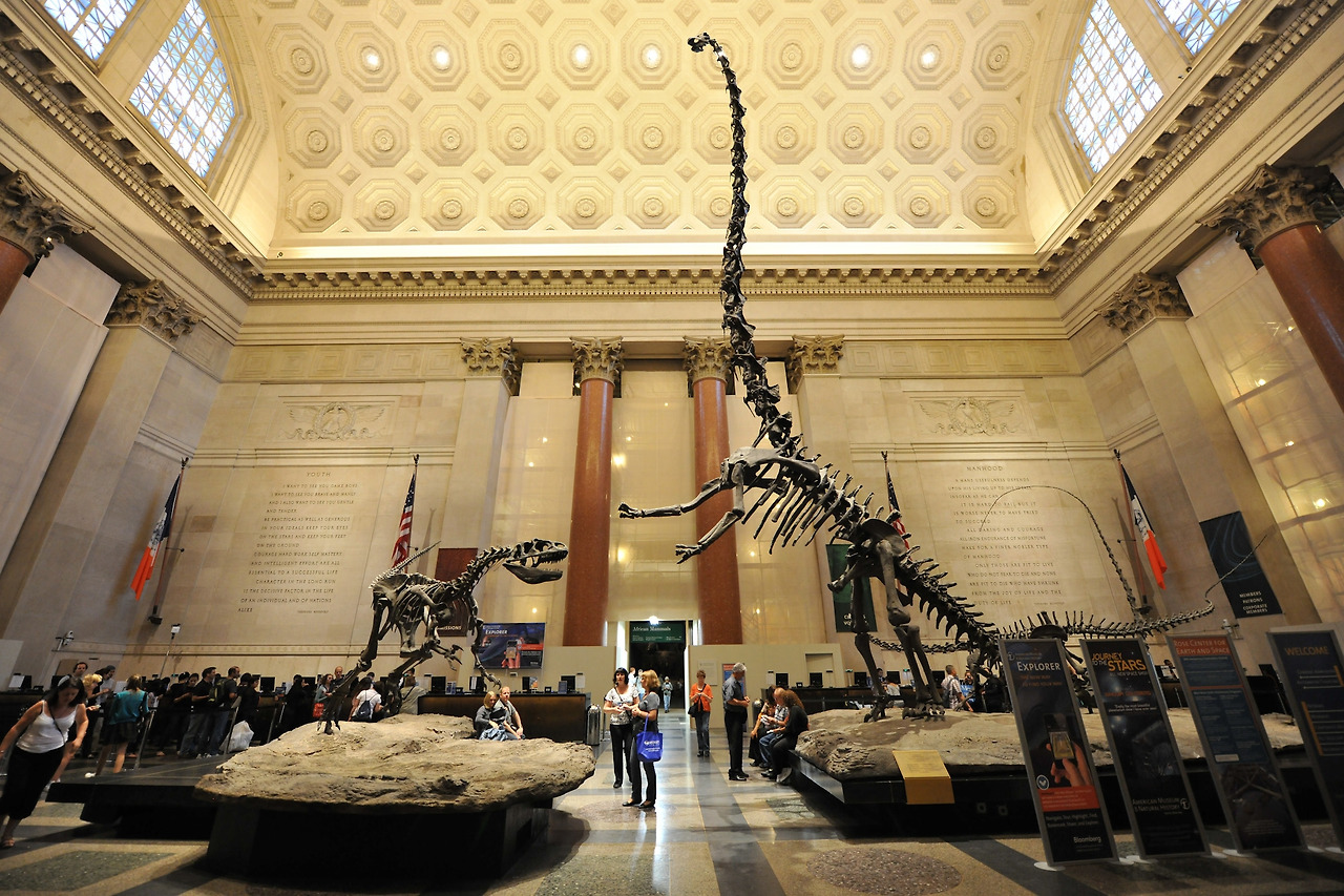 <박물관은 살아있다>라는 영화로 잘 알려진 뉴욕 자연사 박물관은 전시품 3,600만 점을 소장하고 있는 세계 최고의 자연사 박물관이다. 이곳을 방문하면 침략자로부터 새끼를 보호하기 위해 앞 발을 들고 있는 모습을 실제 화석으로 짜 맞춰 재현해 놓은 12미터 길이의 바로사우로스와 1925년 미국 남부 해안에서 잡힌 150톤이 넘는 암 고래를 재현한 푸른 고래를 감상할 수 있다.