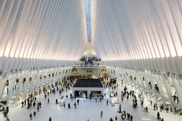 그라운드 제로에 있는 오큘러스 지하철 역은 세계무역센터 역의 또 다른 이름으로 하루 25만 명의 통근객이 오고 가는 뉴욕에서 가장 큰 환승역이다. 어린아이가 두 손으로 새하얀 새를 받쳐 날리는 모습을 형상화한 지하철 역의 외부는 테러 희생자를 기리는 마음을 표현한 것이다.