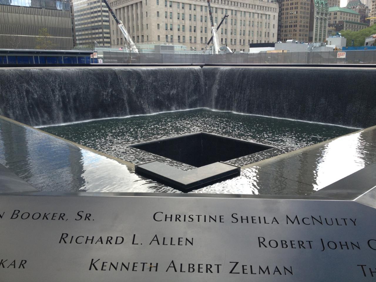 9.11 테러로 붕괴된 두 개의 쌍둥이 빌딩이 서 있던 자리에 초 대형 폭포 2개가 있으며 그 안에 각각 거대한 구멍이 있다. 쌍둥이 빌딩인 세계 무역센터가 무너진 자리를 파서 정사각형의 구멍으로 물이 쏟아져 내리며 폭포를 이루고 있다. 빈 공간은 한 때 그 자리에 서 있던 건물과 테러로 목숨을 잃은 희생자들의 부재를 상징한다.
