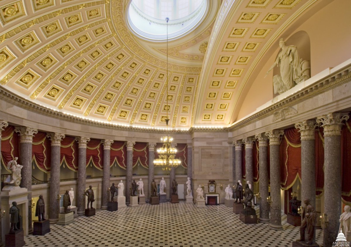 이곳은 과거 미국 하원의 본회의장이었나 하원 의원이 400명이 넘어가자 다른 곳으로 확장 이전하여 지금은 미국 50개 주를 대표하는 시민들의 조각상이 배치되어 있다. 조각상 중에는 발명왕 토마스 에디슨과 현대 시민운동의 어머니 로자 파크스 그리고 제34대 대통령인 아이젠하워의 조각상이 보인다.