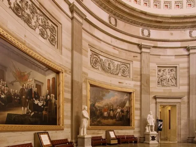 원형 홀의 벽면에는 미국의 역사적인 순간을 묘사한 8개의 작품이 걸려있다. 8개의 작품 중 4개는 존 트럼블이 그린 것으로 그 중 <미국 독립 선언서> <베닝톤 전투>가 가장 눈에 띈다.