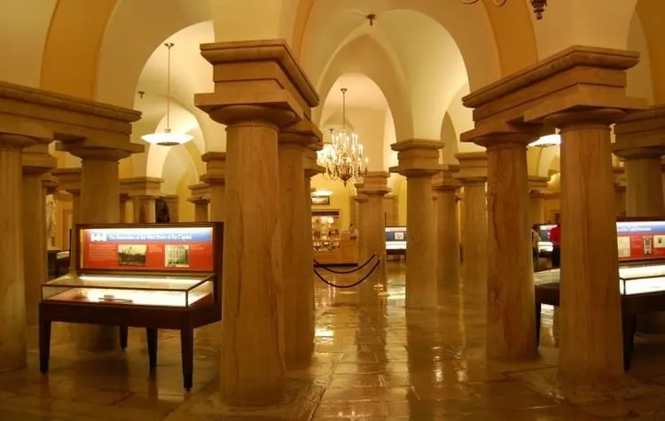 국회 의사당 투어에서 제일 처음 방문하는 곳은 지하 묘실이다. 이곳은 미국 초대 대통령 조지 워싱턴을 안장하기 위해 조성되었으나 완공 전 워싱턴이 사망하여 무덤으로 사용하지 못하고 대신 여러 조각상과 워싱턴에 관한 전시물로 채워져 있다.
