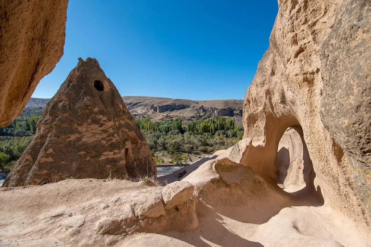 과거 기독교인들이 거주하던 동굴은 현재 집과 식당 그리고 기념품 가게가 들어서 있으며 그 사이로 난 길을 따라 정상에 오르면 주변 계곡은 물론 괴레메와 아바노스 그 기고 에르지예스 설산이 한눈에 들어온다.