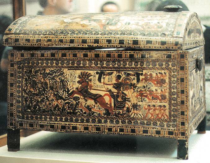 투탕카멘 무덤에서 발견된 궤짝에는 전자를 타고 용맹하게 전장을 누비는 투탕카멘의 모습이 장식되어 있다. 실제 모습이라고 보기는 어렵지만 파라오에게 위대한 전사의 능력이 요구되었다는 점을 알려준다.