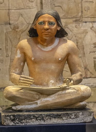 당시 서기는 처음으로 글을 적어 모든 것을 보관하고 기억하는 사람으로 오늘날 컴퓨터를 운영하는 것과 같이 엄청난 권력을 가진 사람이다. 서기 좌상은 보고 듣는 것을 써야 하는 직업의 특성을 보여주기 위해 눈과 귀를 돋보이기 만들었다. 손에 들고 있는 것을 파피루스이다.
