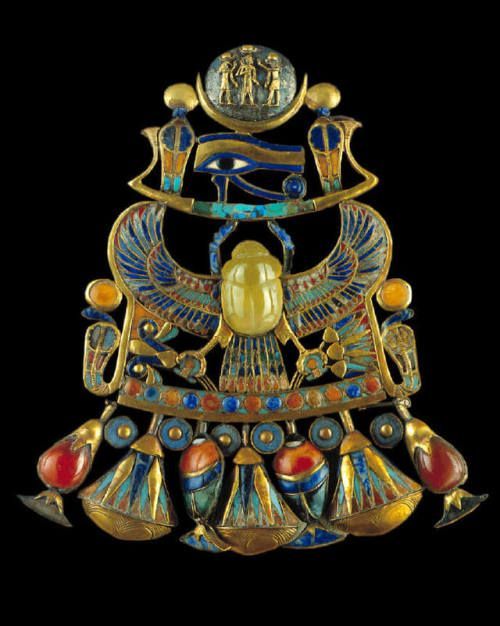 먼저 펜던트의 중앙에 영생과 부활을 상징하는 딱정벌레가 보인다. 그리고 딱정벌레 위쪽에 파라오의 권위와 보호를 상징하는 호루스의 눈이 있으며 그 양옆으로 고귀함을 상징하는 코브라가 태양의 배를 타고 있다. 딱정벌레 아래에는 창조와 생명을 상징하는 연꽃무늬가 보인다. 상징성과 장식성이 높은 이 작품은 이집트 박물관이 자랑하는 걸작 중 하나이다.