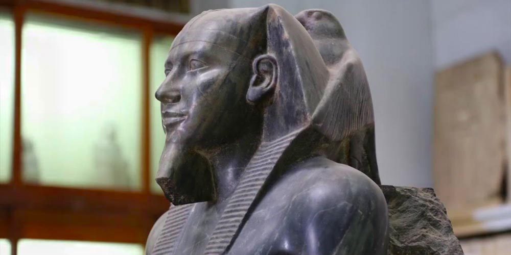 이곳에서 발견되어 현재 이집트 박물관에 전시하고 있는 <멘카우레 파라오 조각상>을 보면 중간에 멘카우레 왕이 서 있고 양 옆으로 하토르 여신과 상 이집트를 상징하는 여신이 보인다. 조각상에서 왼편에 보이는 미와 사랑의 여신인 하토르는 머리에 그녀의 상징인 소뿔을 달고 있다. 조각상 전체적으로 엄격한 좌우대칭을 이루며 세부적인 근육까지 표현한 조각상은 부드러운 표면처리와 함께 돌로 만든 조각상이라는 사실을 잊게 만든다.