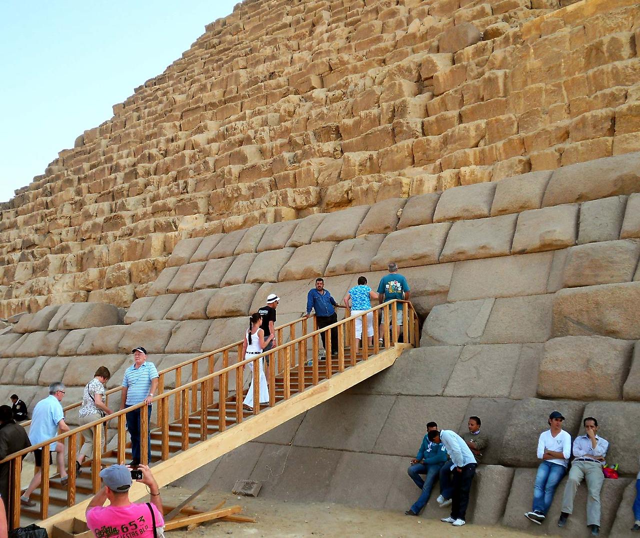 세 피라미드 중 가장 작은 멘카우레 피라미드로 이동하여 피라미드 안으로 들어간다.