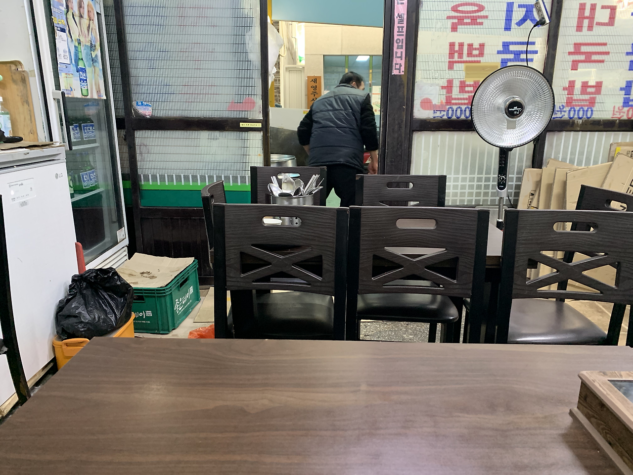 테이블 5개밖에 안 되는 국밥집에 나이 드신 부부가 국밥 국물을 손질하고 표도 나지 않는 식당 청소를 하고 계신다. 손님도 없는데 연세가 많으신 분들이 구석진 곳에서 장사를 하는 모습에 부모님 생각이 났다. 그렇게 국밥집을 스쳐 지나가는데 국밥집의 텅 빈 공간과 소주 생각이 나를 멈추어 세웠다. 혼잡한 점심시간에 한적한 식당에서 국밥과 소주 한잔이면 더할 나위가 없겠다는 생각이 들었다.