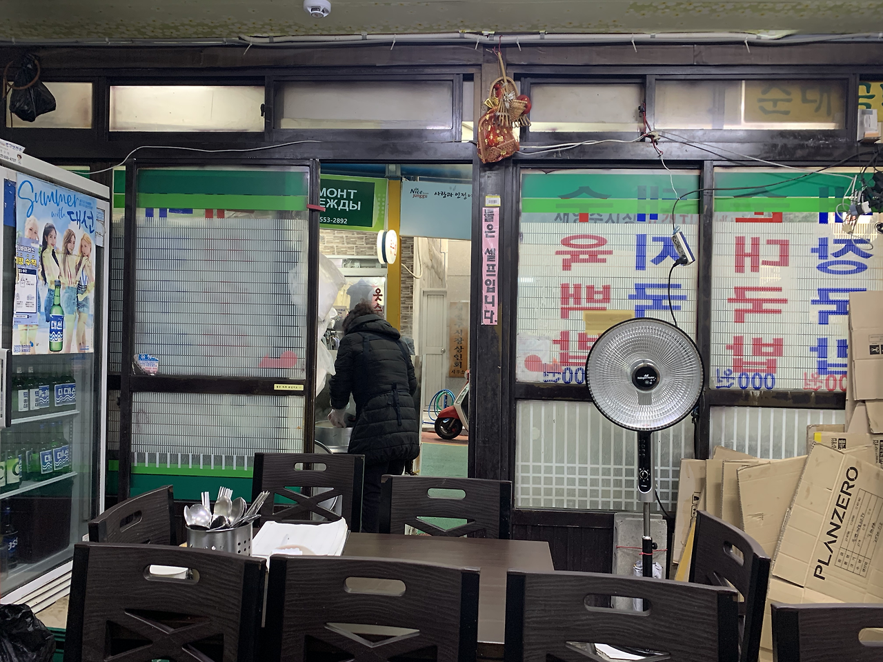 그날도 그랬다. 글이 주는 영혼의 허기를 없애려 길을 건너 산으로 갔다. 마스크에서 올라오는 습기가 안경을 적시는 가운데 100m도 안 되는 영주 시장을 지나고 있었다. 채소와 과일을 파는 가게를 지나고 횟집을 지났다. 그리고 칼국수와 김밥집을 지나자 구석진 곳에 간판도 잘 보이지 않는 국밥집이 눈에 들어왔다.