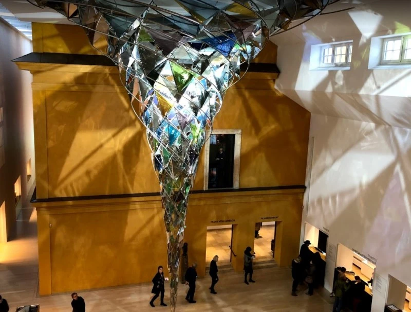 미술관 안으로 들어가면 덴마크 출신의 설치작가인 올라프 엘리아슨의 작품인 유리로 만든 거대한 회오리 작품이 천장을 향해 뻗어 있다. 짙은 노란색과 하얀색으로 구성된 미술관의 실내공간이 회오리의 반짝거리는 단면에 파편적으로 담겨 마치 피카소의 작품처럼 세상의 여러 가지 이면을 보여준다.